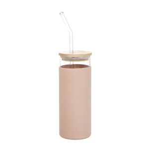 Rožinė gertuvė su šiaudeliu (450 ml)