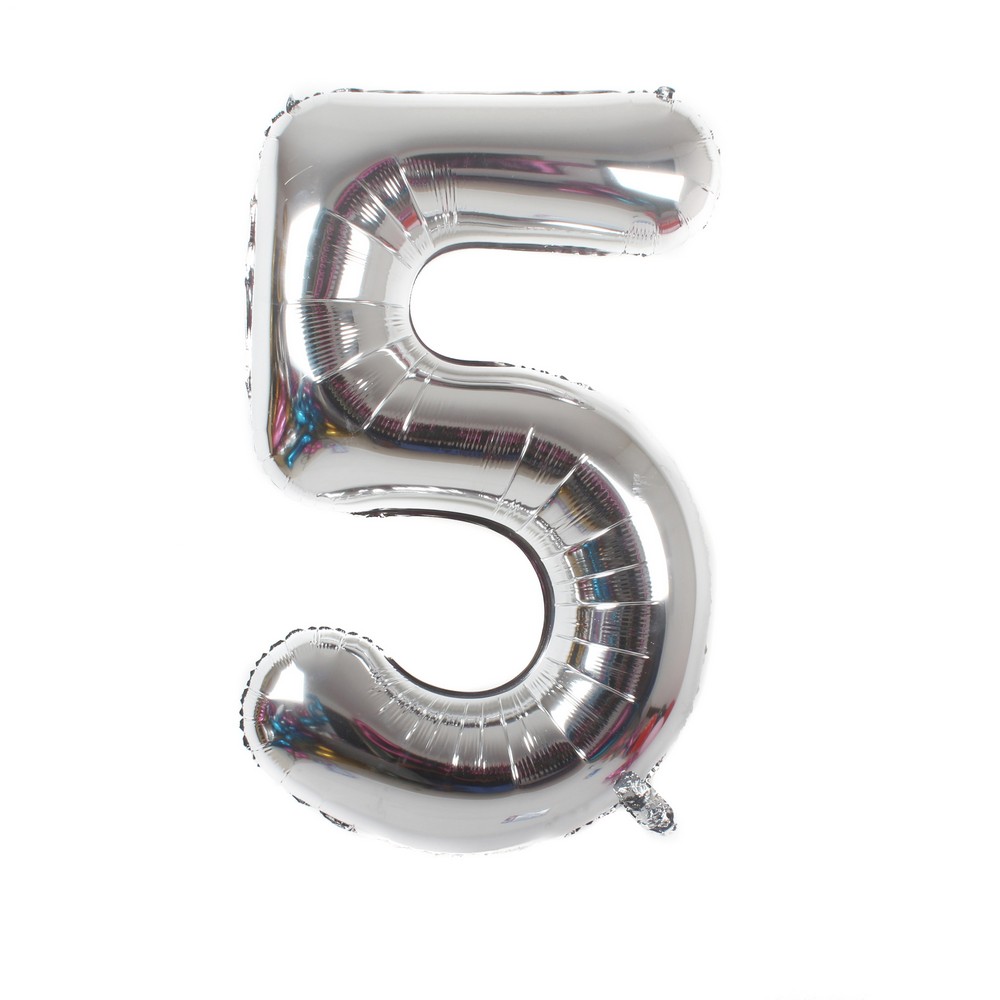 Folinis balionas „5“, sidabrinis (~85 cm)